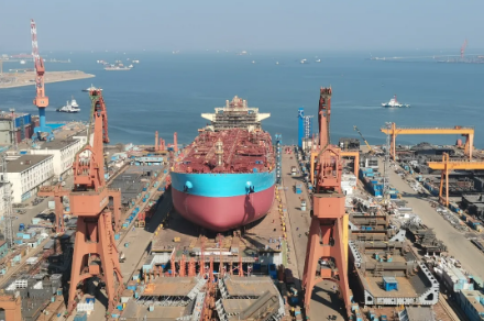 3月23日,隨著一聲汽笛長(zhǎng)鳴,中國(guó)船舶集團(tuán)旗下中國(guó)重工子公司大船集團(tuán)為馬士基油輪建造的第6艘11萬(wàn)噸原油/成品油船2號(hào)船順利下水。