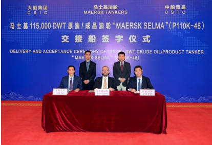 4月15日,中國(guó)船舶集團(tuán)旗下中國(guó)重工子公司大船集團(tuán)為馬士基油輪建造的11.5萬(wàn)噸原油/成品油船46號(hào)船簽字交工!