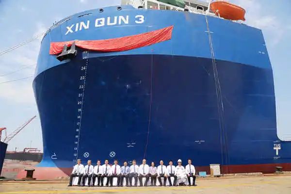 6月24日,中國船舶集團旗下中國重工子公司青島北海造船和中船貿易為信群集團建造的5萬噸半潛船?舉行命名儀式,新船命名為“XIN QUN 3”輪。