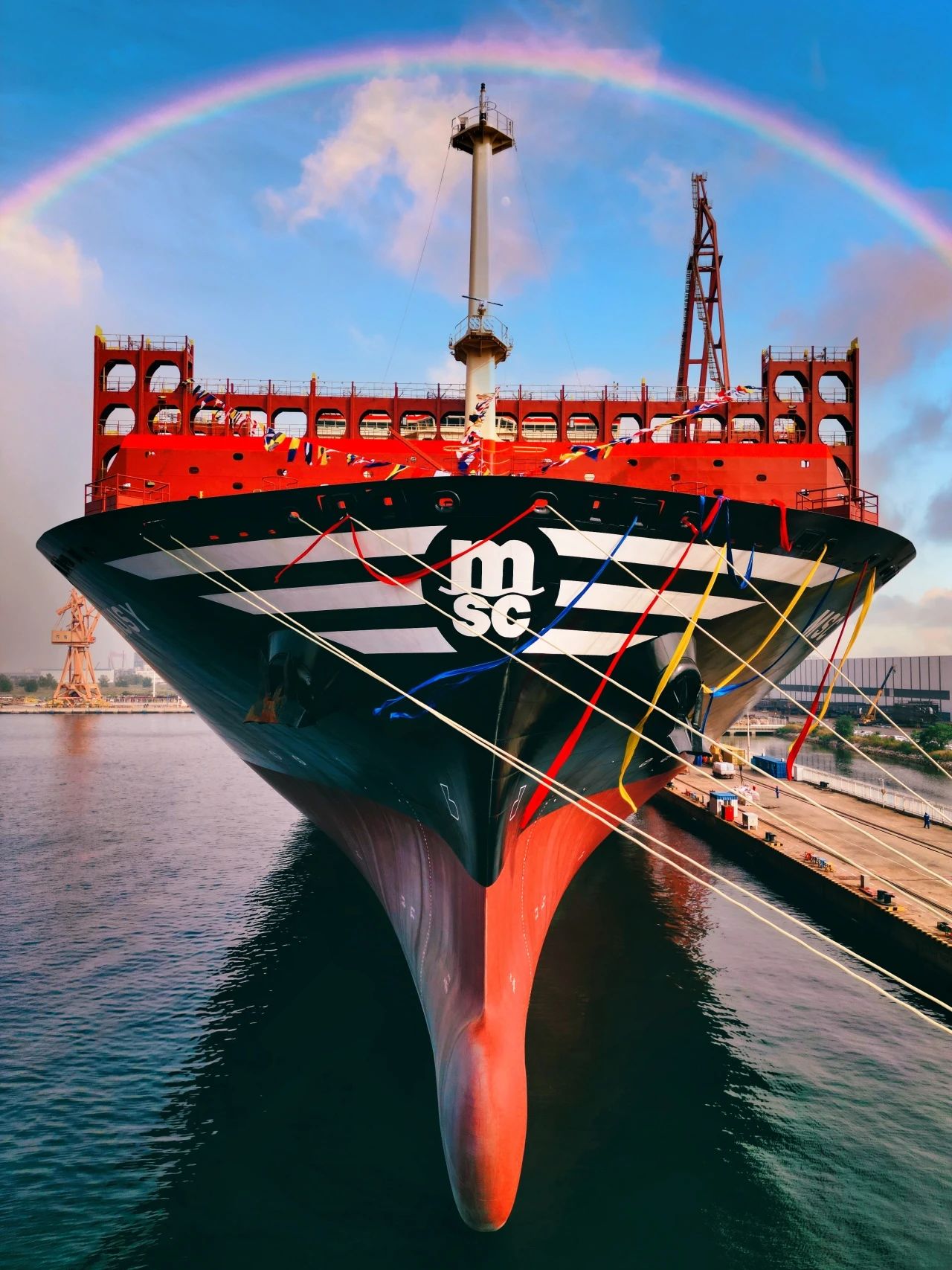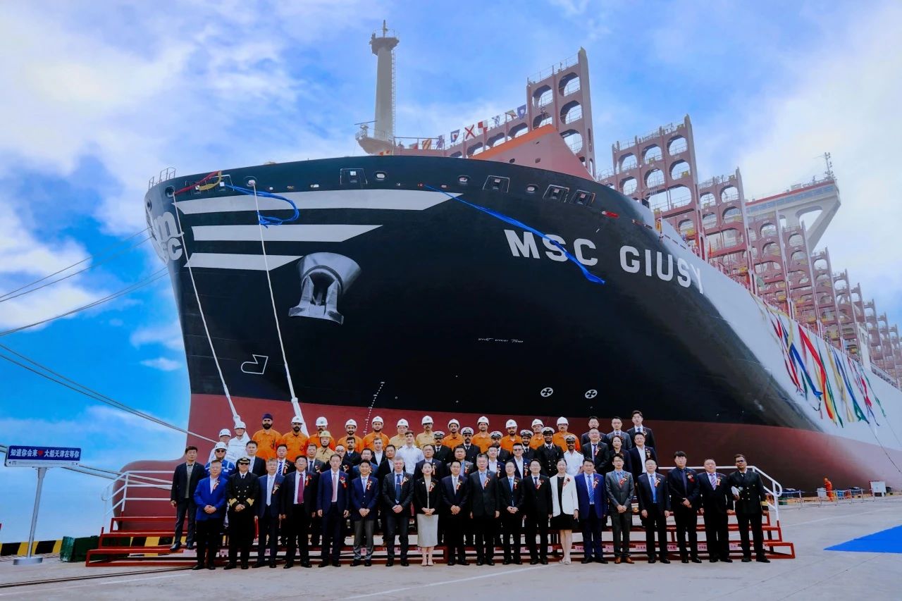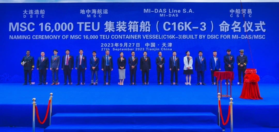 9月27日,中國船舶集團(tuán)旗下中國重工子公司大連造船天津基地為MSC地中海航運(yùn)建造的華北地區(qū)最大集裝箱船16000TEU集裝箱船3號船“MSC GIUSY”輪提前合同期100天,命名交付。