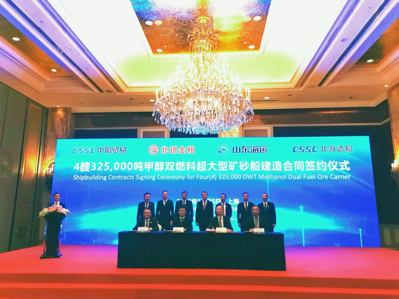12月5日,在中國國際海事技術(shù)學術(shù)會議和展覽會上,中國船舶集團旗下中國重工子公司北海造船攜手中船貿(mào)易、北銀金融租賃有限公司以及山東海洋集團有限公司,共同簽訂了四艘GuaibaMax型32.5萬噸甲醇雙燃料超大型礦砂船的建造合同。